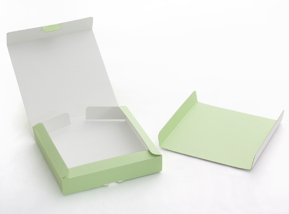 エンボス調の極薄ダンボールを使用し、黒の箔押し加工で仕上げたパッケージ。